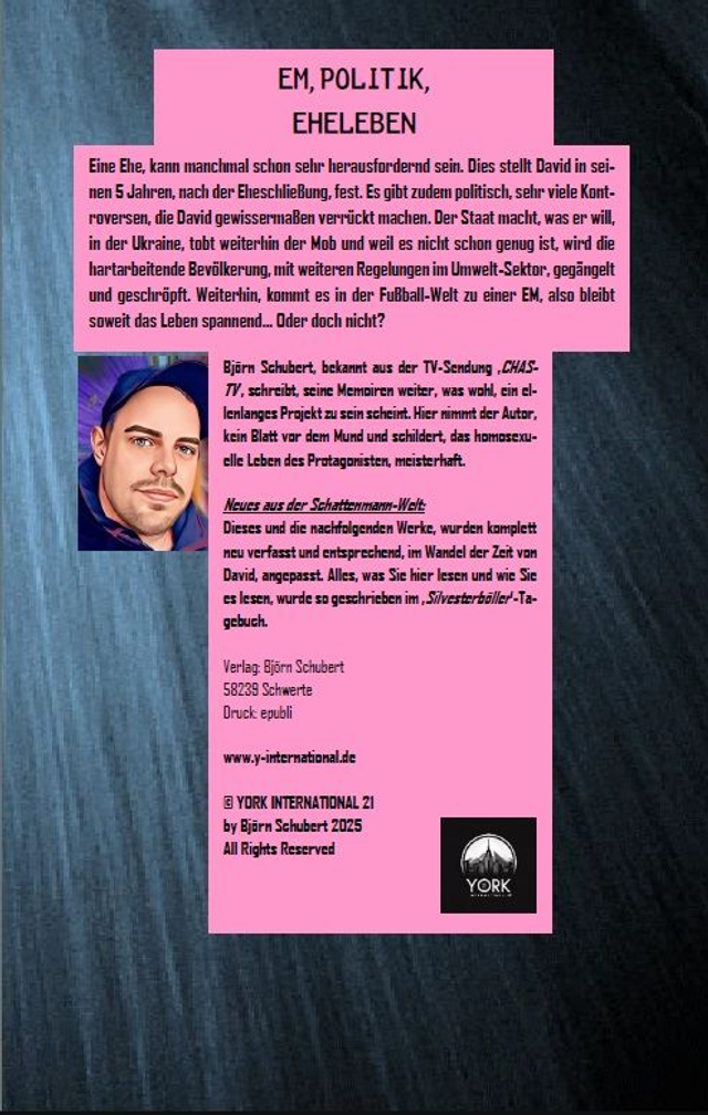 Eine Ehe, kann manchmal schon sehr herausfordernd sein. Dies stellt David in seinen 5 Jahren, nach der Eheschließung, fest. Es gibt zudem politisch, sehr viele Kontroversen, die David gewissermaßen verrückt machen. Der Staat macht, was er will, in der Ukraine, tobt weiterhin der Mob und weil es nicht schon genug ist, wird die hartarbeitende Bevölkerung, mit weiteren Regelungen im Umwelt-Sektor, gegängelt und geschröpft. Weiterhin, kommt es in der Fußball-Welt zu einer EM, also bleibt soweit das Leben spannend… Oder doch nicht?